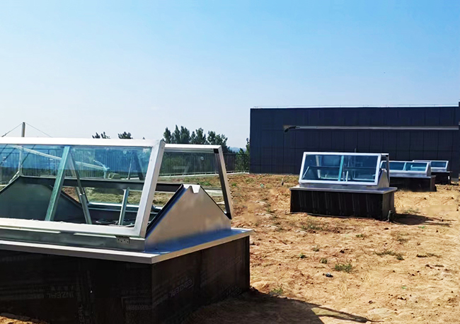 天窗外觀為三角形,天窗頂部可采用采光板或玻璃,有效增加室內(nèi)采光,且防水性好。開啟電機(jī)設(shè)計(jì)成24V安全電壓,可連接消防聯(lián)動(dòng)控制系統(tǒng)及風(fēng)、雨、煙感應(yīng)器。***開啟角度為60°。