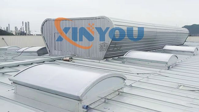 鑫友根據(jù)客戶(hù)要求制作方案和優(yōu)化設(shè)計(jì)。通風(fēng)器主要由壓型彩鋼板、FRP采光板及鋼結(jié)構(gòu)骨架等附件組合而成,安裝于諸如電力、冶金、化工、機(jī)械、電子、造船、軌道交通等各種行業(yè)的廠(chǎng)房建筑屋面,發(fā)揮其自然通風(fēng)采光之功用。