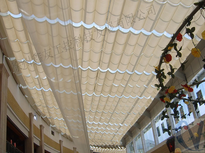 效 果:天棚簾完全展開后,面料呈現(xiàn)均勻的波浪效果。