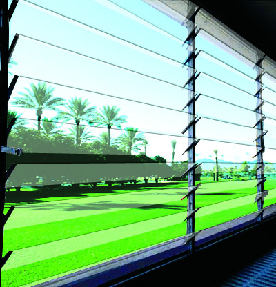 新式玻璃百葉窗遮陽(yáng)系統(tǒng),完美上演“遮陽(yáng)、裝飾、自然風(fēng)景”三重奏。玻璃百葉通透性***好,葉片選用透明或者磨砂玻璃等不同的材料,可以取得不同的視覺(jué)效果。玻璃百葉可以代替玻璃幕墻使用,既克服了幕墻不能開啟的缺憾,又保持了晶瑩剔透。